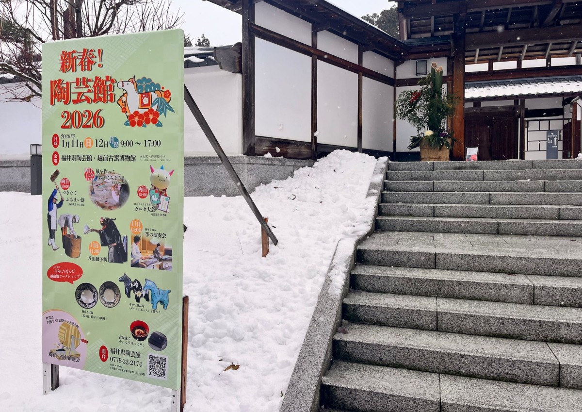 毎年陶芸館で開催されている新年のイベントに今年も行ってきました。2026年の「新春!陶芸館2026」では、八田獅子舞や箏の演奏会、つきたてふるまい餅など新年にぴったりの行事が2日間もりだくさんで開催されていました。