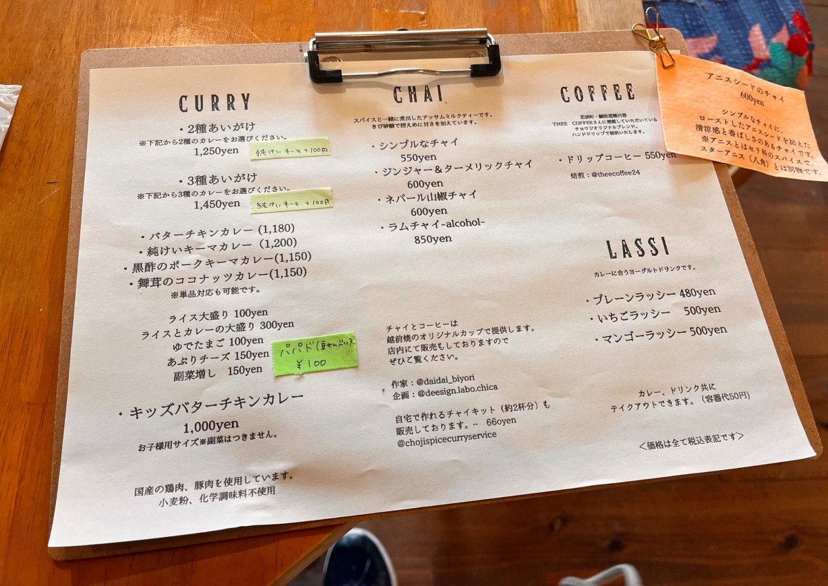 【越前陶芸村】カレーとチャイのお店「チョウジ」でおいしいランチとチャイタイム