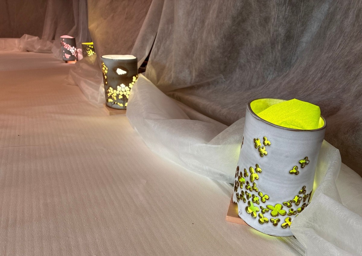 桜模様の越前焼も越前町らしさが見えてすてきです。焼き物は、municafeさんで箸置きを作った作家さんが担当しているそうです。