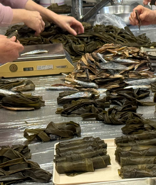 一度に何百個もの昆布巻きを巻き、冷凍しておきます。