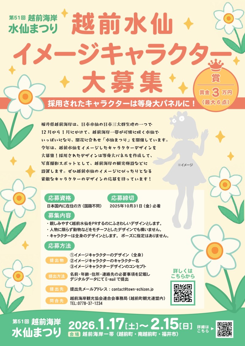 ぜひ越前水仙のイメージにぴったりとなる素敵なキャラクターのデザインの応募を待っています!