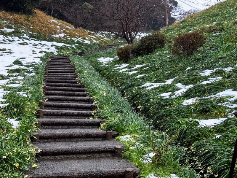全体的に、22日から降り続いた大雪の影響で雪に覆われているか水仙が倒れてしまっている状態です。