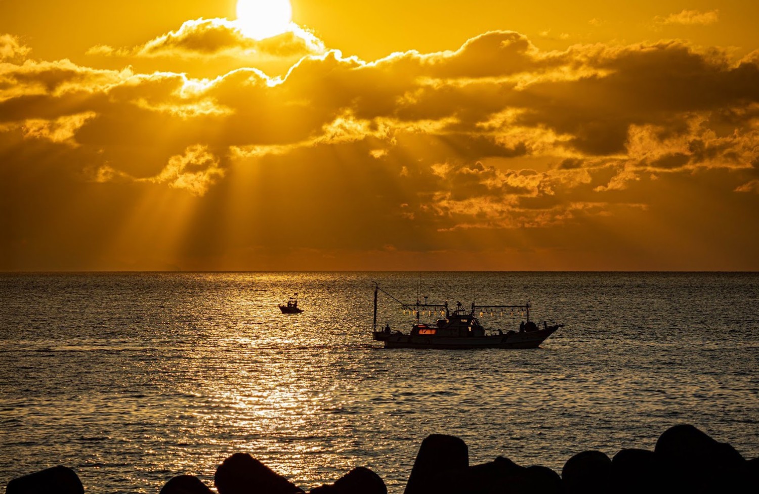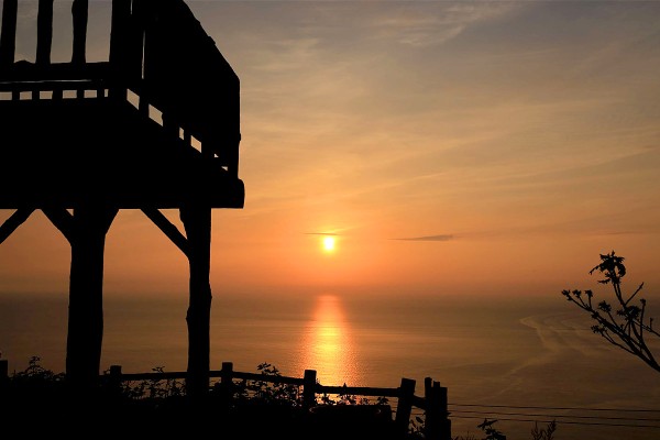 遮るもののない水平線へゆっくりと沈んでいく夕日を、心ゆくまで堪能できる特等席です。